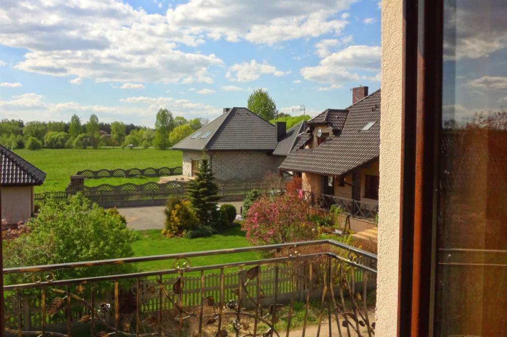 W domu na parterze znajduje się duża kuchnia w pełni wyposażona, w której przygotują Państwo każdy posiłek włącznie z obiadem. Kuchnia połączona jest z przestronną jadalnią, która składa się z dwóch pomieszczeń, w każdym z nich znajduje się duży stół, przy którym wygodnie zasiądzie czteroosobowa rodzina. Z jadalni wychodzimy na taras od strony wschodniej i południowej. Taras od strony południowej osłonięty jest daszkiem, dlatego nawet w bardzo słoneczny dzień, czy deszczową pogodę można zjeść posiłek na świeżym powietrzu-podziwiając piękny widok stawu, obok którego spaceruje bocian. Na parterze mamy jeden z pokoi czteroosobowy idealny dla rodzin z małymi pociechami. Z pokoju tego również wychodzimy na taras od strony wschodniej, którym możemy przejść na taras południowy osłonięty daszkiem. Na poddaszu są jeszcze dwa pokoje trzy osobowy z balkonem od strony zachodniej oraz pokój dwu osobowy również z balkonem. Wszystkie nasze pokoje posiadają łazienki i wyposażone są w wygodne łóżka 90cm, telewizje, Internet, a w pokoju dwuosobowym jest łóżko małżeńskie.
