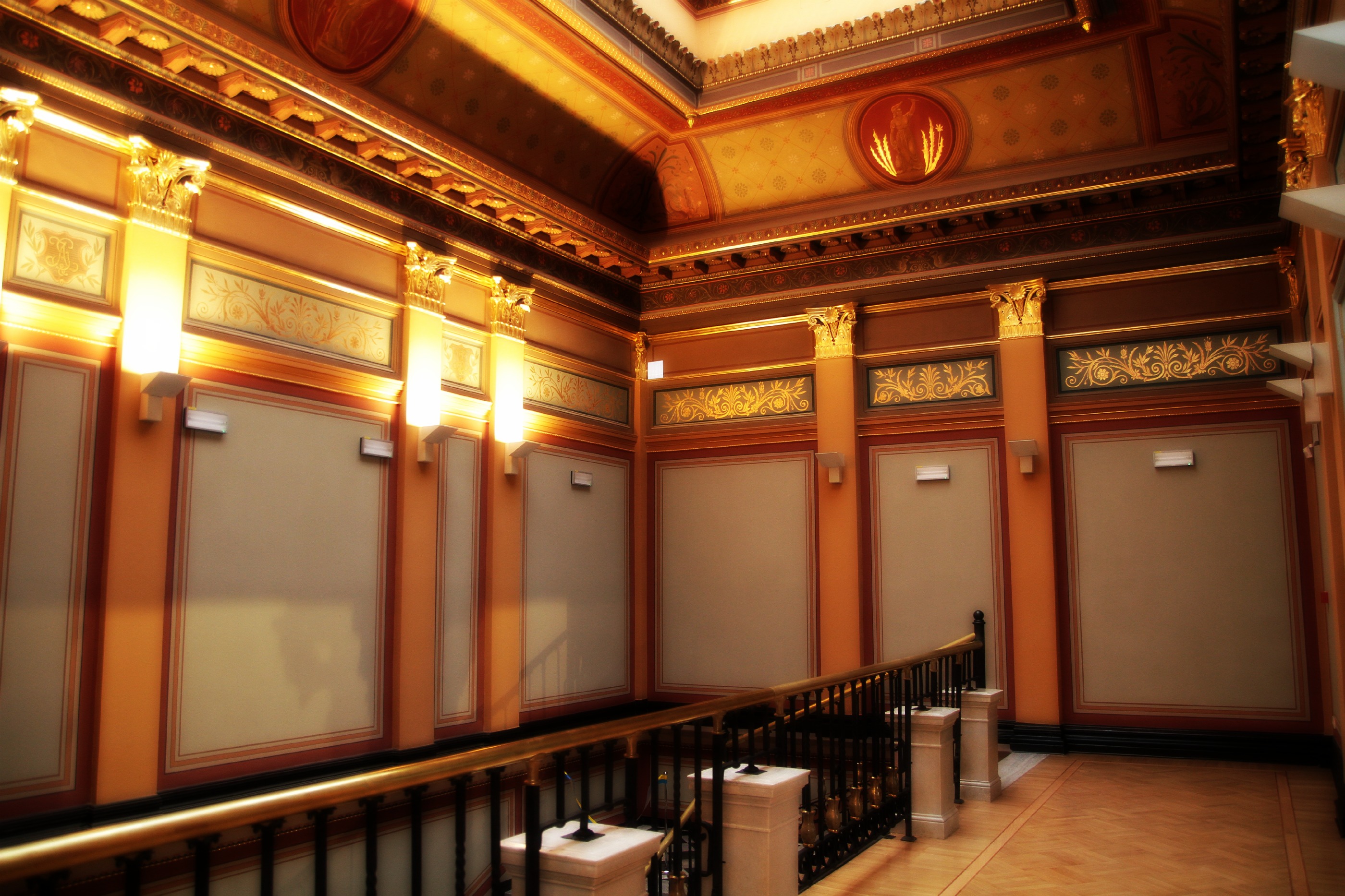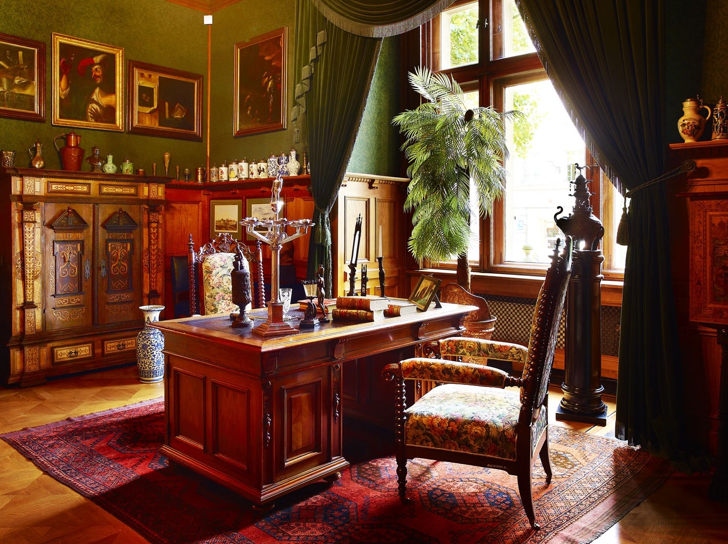 Wewnątrz budynku dawnej willi, zwanej też pałacem (plac Wolności 12A) znajduje się bogato dekorowany hall z klatką schodową. Na pierwszym piętrze kiedyś mieściła się m.in. sala balowa, a dziś sala Urzędu Stanu Cywilnego w Katowicach.