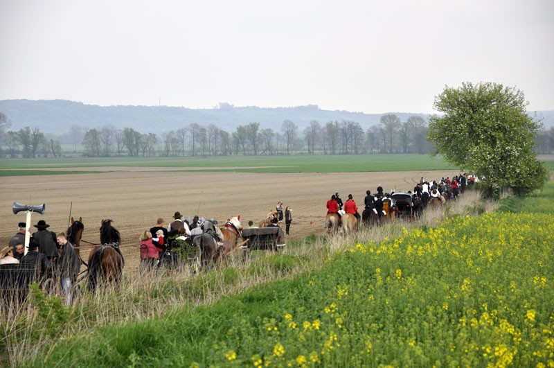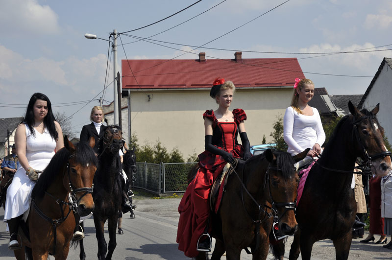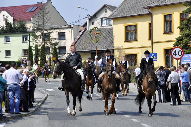 W tradycji morawskiej procesje wielkanocne odbywały się nie tylko konno, ale również pieszo. Z jednej strony to religijna pamiątka szukania Chrystusa (podobnie jak apostołowie odnaleźli Chrystusa w drodze do Emaus); z drugiej – to trochę magiczna forma zapewnienia polom urodzaju w nadchodzącym sezonie, co podkreśla nabożeństwo w kościele odpustowym Św. Krzyża, modlitwy w czasie drogi i sam objazd pól.