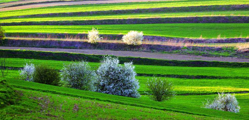 Poruszając się nadal w dolinie natkniemy się na niewielkie zadrzewienia śródpolne umiejscowione na stokach o dużym nachyleniu. Drzewa wiążą tam glebę korzeniami i zapobiegają erozji. Zadrzewienia powstają zwykle w takich miejscach, gdzie niemożliwe było wjechanie maszynami rolniczymi. Wystarczy spojrzeć na otaczające użytkowane pola, by zauważyć, że posiadają o wiele łagodniejsze nachylenie.