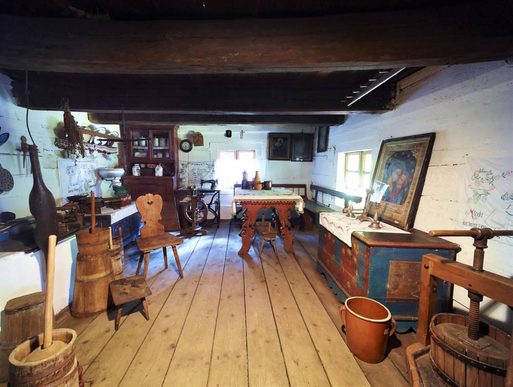 Pszczyna, Zagroda Wsi Pszczyńskiej, wnętrze izby kuchennej chałupy z Grzawy, foto Tomasz Renk slaskie.travel