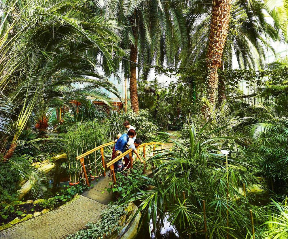 Spacer po palmiarni można odbyć na dwóch poziomach. Można schronić się pod koronami zielonych drzew, ale i spojrzeć na nie z góry. Kładki, mostki, wodne oczka pełne ryb i miniwodospady tworzą zdrowy, przyjemny mikroklimat. Bardzo ważnym jest fakt, że bez barier mogą je zwiedzać także osoby niepełnosprawne.