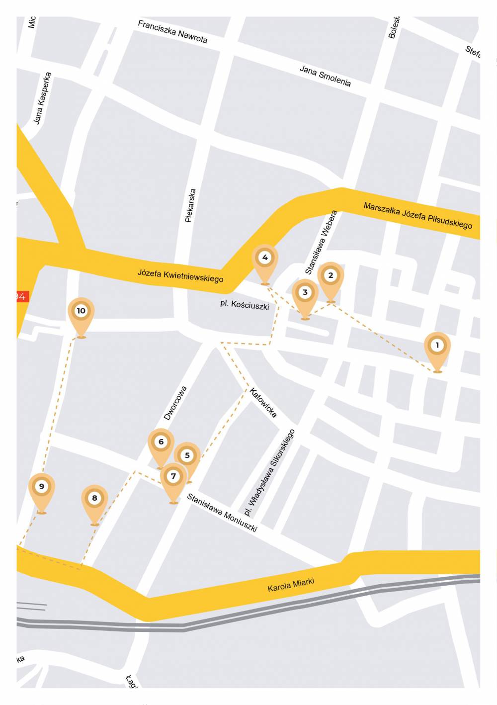 Ul. Dworcowa (dawniej Bahnhofstraße) to główny deptak Bytomia. Miała witać, zachwycać i prowadzić przyjezdnych od dworca kolejowego aż do pl. Kościuszki (dawniej Boulevard)