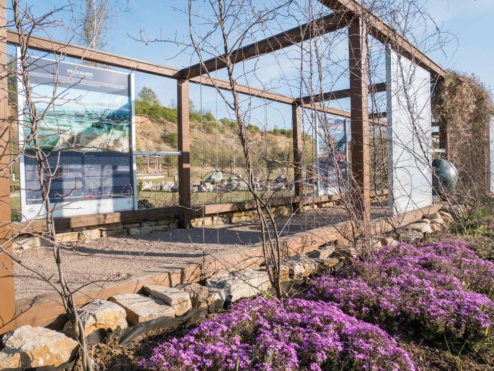 Idziemy prosto jeszcze 500 m i dochodzimy do dalszej części dawnego kamieniołomu. Tu stworzono Park Gródek obejmujący m.in. urwiste ściany kamieniołomu oraz zbiornik wodny Wydra, na którym zbudowano unikalną, pomysłową kładkę o długości stu trzydziestu metrów! Stan wody w zbiorniku Wydra jest zmienny dlatego czasami kładka wznosi się pół metra nad lustrem wody, a innym razem może znajdować się w całości pod wodą. Przy dużej dozie ostrożności można przejechać wózkiem. Wracamy tą samą drogą.