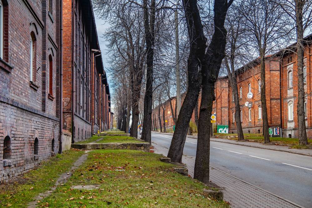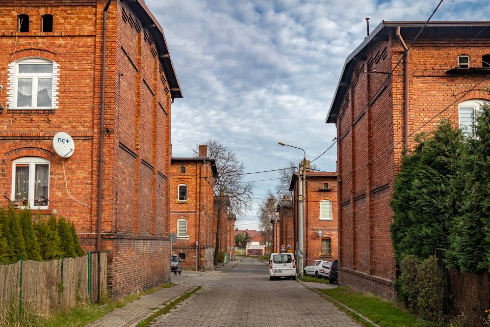Na początku XX wieku właściciele huty i kopalni postanowili zbudować nowoczesne osiedle mieszkaniowe. Tak powstał piękny zespół ceglanej zabudowy o przemyślanym układzie urbanistycznym, zaprojektowany z myślą o wygodzie i codziennych potrzebach rodzin robotniczych. Pierwsze budynki zaczęto wznosić w 1907 roku, a później dzielnica rozwijała się w dwóch znaczących etapach. Do dziś zachowało się mnóstwo obiektów, które są ustawione równo wzdłuż gęstej siatki ulic. Domy są duże, wielorodzinne, trzykondygnacyjne i nakryte dachami naczółkowymi.