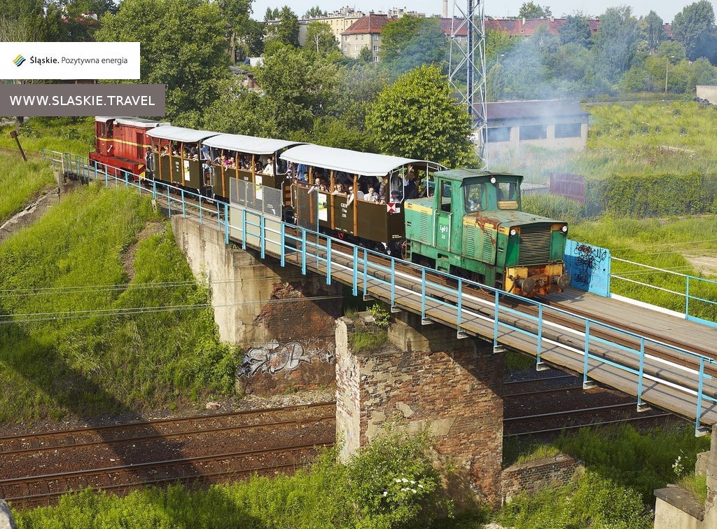 Podróż rozpoczynamy w Bytomiu położonym zaledwie 12 km od stolicy regionu. Nieopodal dworca kolejowego znajduje się pierwsza stacja – Bytom Główny Wąskotorowy. Trasa przejazdu kolei liczy ponad 160 lat. Budowę rozgałęzionej sieci szyn szerokości 785 mm rozpoczęto już w 1851 roku. W czasach gwałtownego rozwoju przemysłu sieć łączyła najważniejsze ośrodki przemysłowe: huty, elektrownie, kopalnie. W czasach świetności tabor liczył 73 parowozy i 6000 wagonów! Obecnie z ok. 250 kilometrów połączeń pozostał jedynie 21 kilometrowy fragment wiodący przez Bytom, Dąbrowę Miejską, Suchą Górę, Repty, Tarnowskie Góry i Miasteczko Śląskie mijając po drodze najciekawsze industrialne obiekty tej części regionu: Szyb Krystyna będący pozostałością po byłej Kopalni Szombierki (w latach 30. szyb dysponował największą w Europie maszyną wyciągową), kolosalne zabudowania Elektrociepłowni Szombierki, Parowozownię Bytom-Karb i Zabytkową Kopalnię Srebra w Tarnowskich Górach. Turyści chcący ruszyć śladami przemysłu podczas tej wycieczki nie będą się nudzić!