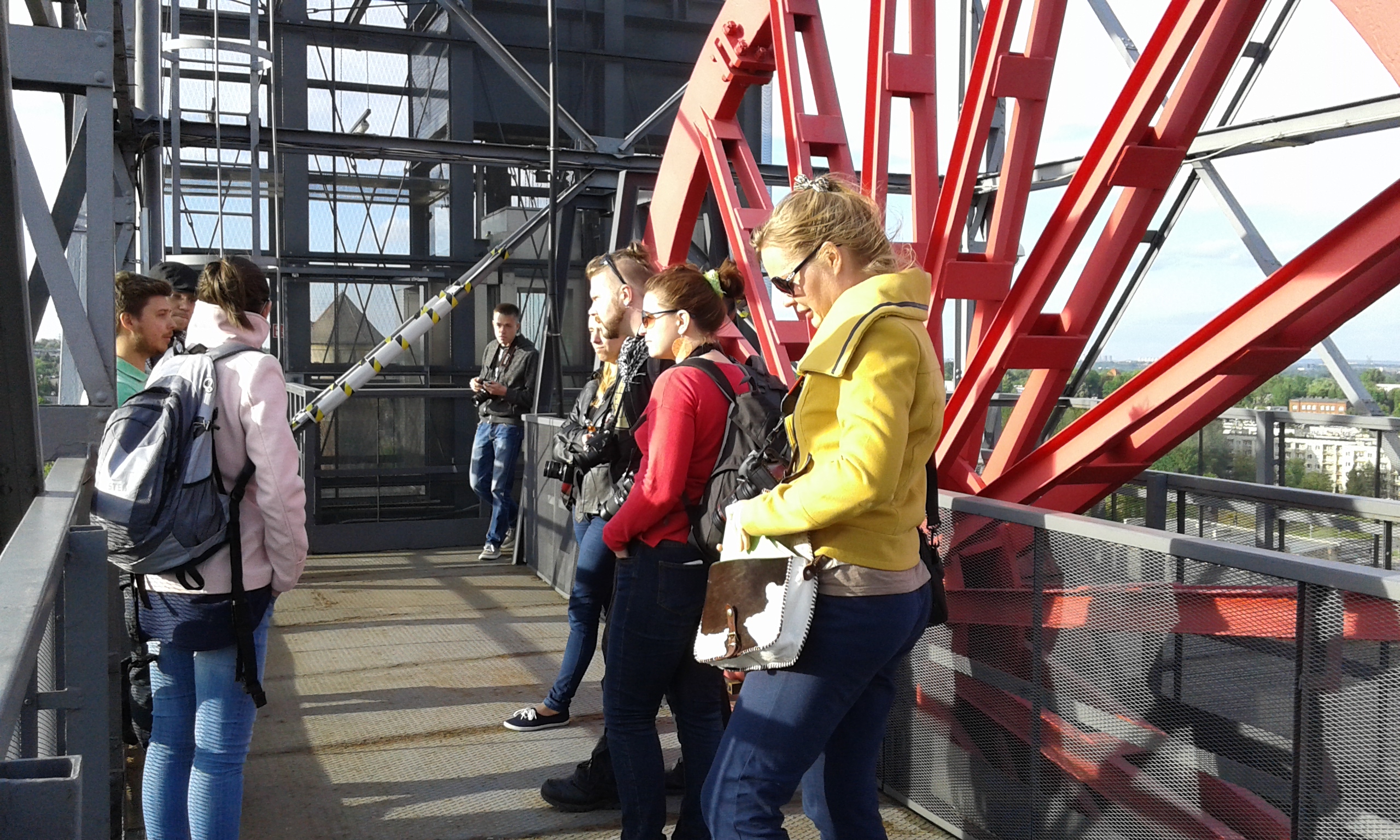 Warto wjechać i na wieżę widokową, czyli prawdziwy kopalniany szyb. Widzi się Katowice jak na dłoni.