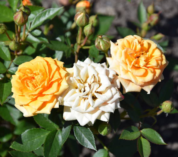 Poza odmianami róż wielokwiatowych (rabatowych), w rosarium trafimy na róże pienne (sztamowe), czepne (pnące) obrastające altany i pergole oraz róże miniaturowe.