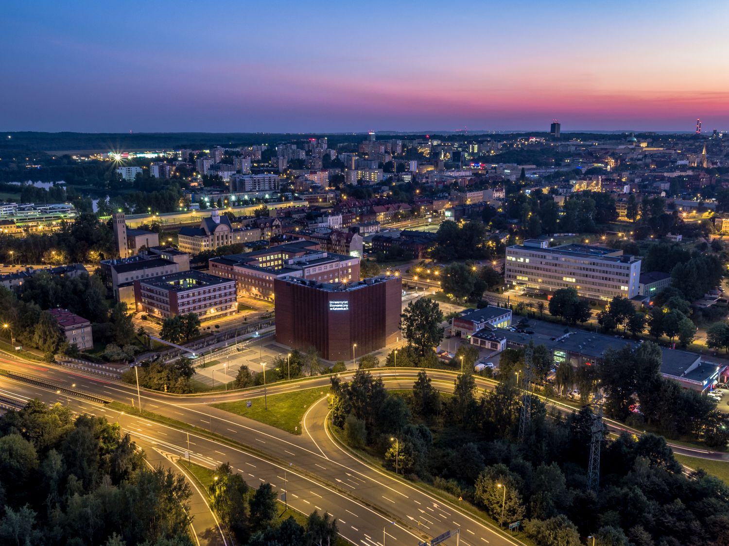 Uniwersytet Ekonomiczny, CNTI nocą, panorama, fot. arch. UE