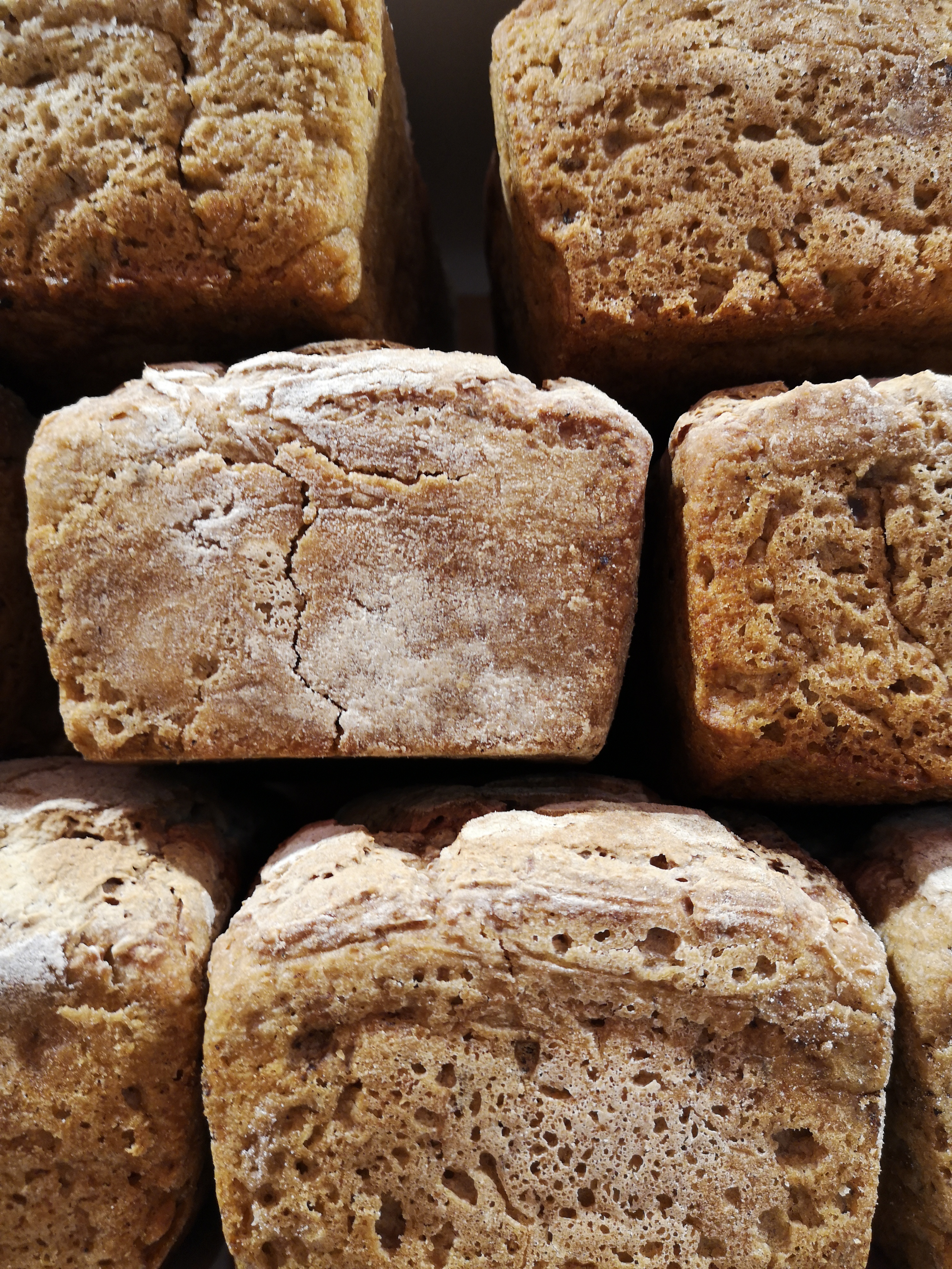 Chleb żytni razowy na zakwasie, razowe ciastka musli, precle razowe, ciastka maślano-orzechowe i inne wyroby piekarnicze