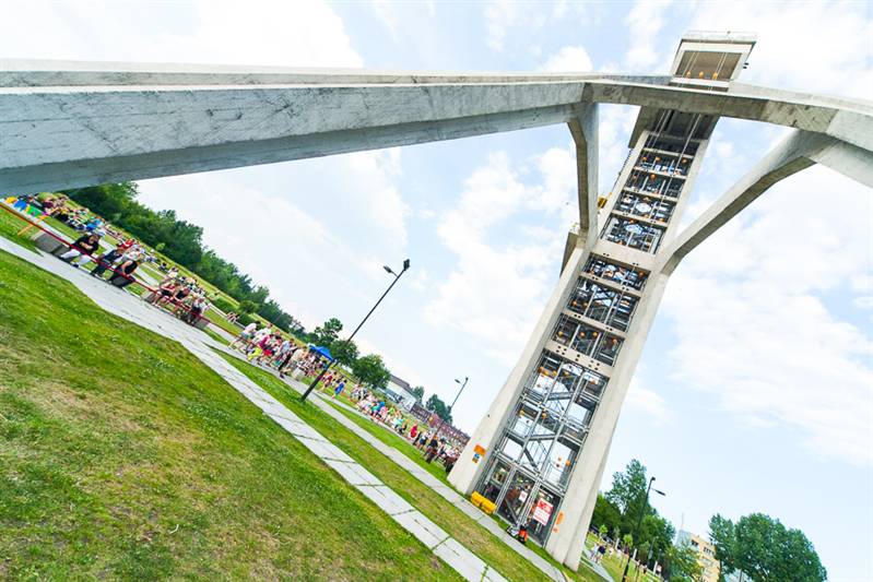Wieża wyciągowa, służąca do podnoszenia węgla za pomocą dwóch zbiorników wypróżnianych spodem, została wybudowana w 1933 r. według projektu inż. Ryszarda Heilemana z Katowic, który wykorzystał francuskie wzory technologiczne. Jej budowa finansowana była przez kapitał polsko-francuskiej spółki ,,Skarboferm”. Początkowo szyb nosił imię ,,Wielki Jacek”, od 1937 r. – ,,Prezydent” na cześć Prezydenta RP Ignacego Mościckiego, związanego w tamtych latach z Chorzowem. Wieża typu zastrzałowego, o wyjątkowej, żelbetowej konstrukcji i wysokości 42 m – jako jedna z najnowocześniejszych wówczas w Europie – posiada dwa koła linowe o średnicy 5,5 m ustawione równolegle obok siebie. Wraz z urządzeniami towarzyszącymi, w tym skipem o pojemności 10 ton, była w stanie wydobyć na powierzchnię ponad 320 ton węgla na godzinę! Obok wieży znajdowały się budynki maszyny wyciągowej i sortowni (rozebrane w 1996 r.).