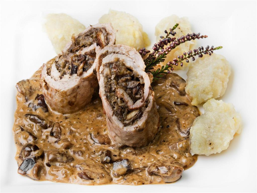Rolada śląska z białymi kluskami i czerwoną kapustą
