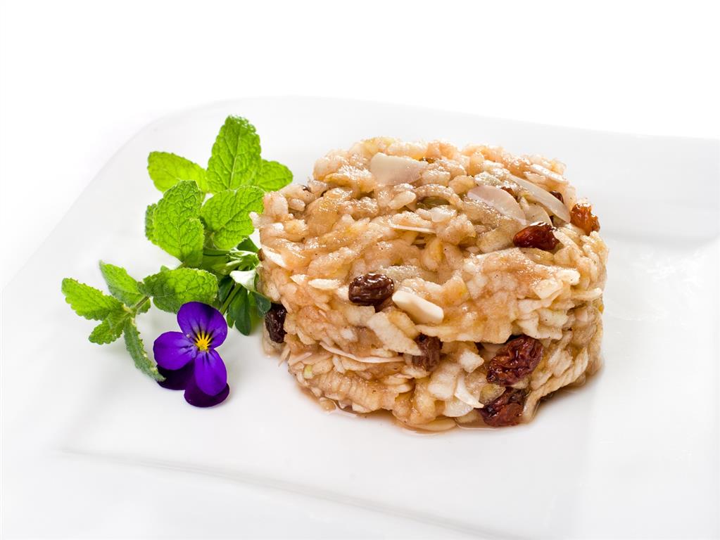Charoset w formie szarlotki. To banalnie prosty, żydowski deser z tartych jabłek, grubo siekanych orzechów włoskich, migdałów, rodzynek, cynamonu i słodkiego, czerwonego wina.