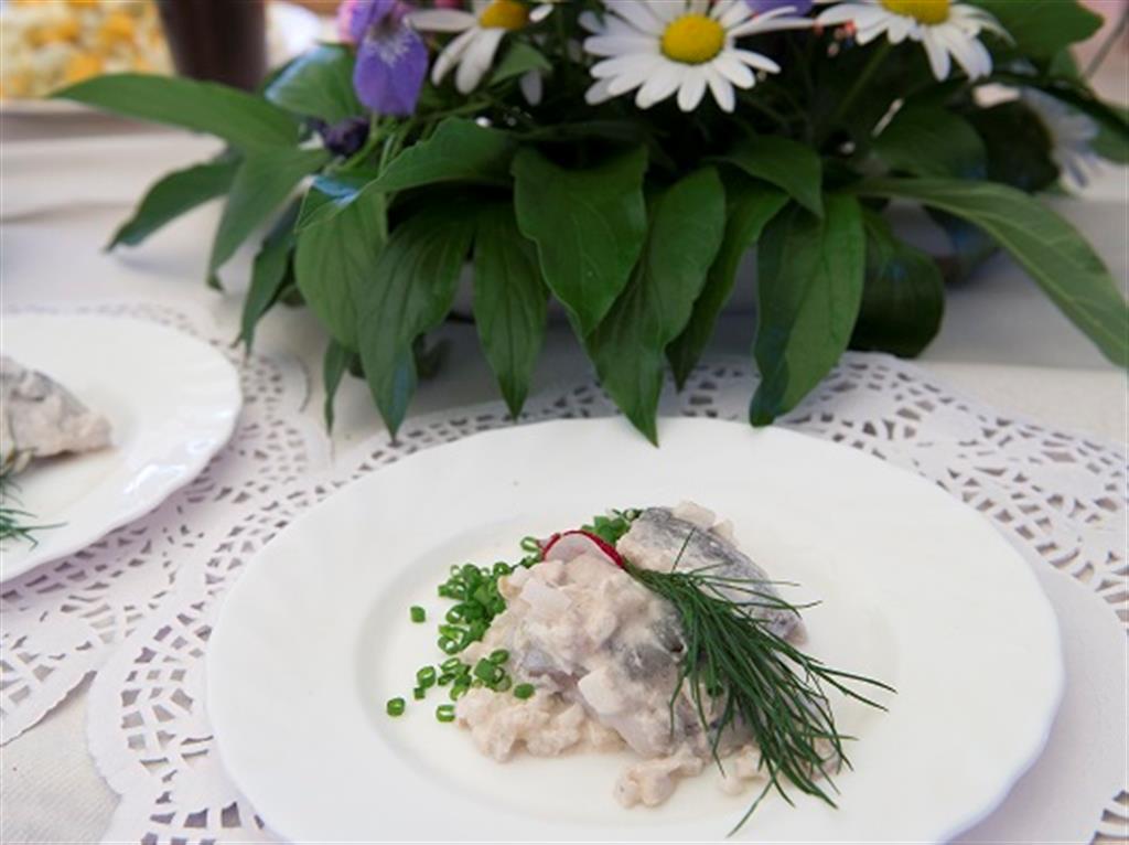 Harynka (matias Holenderski, mus z kiszonego jabłka, czerwona cebula, creme fraiche).