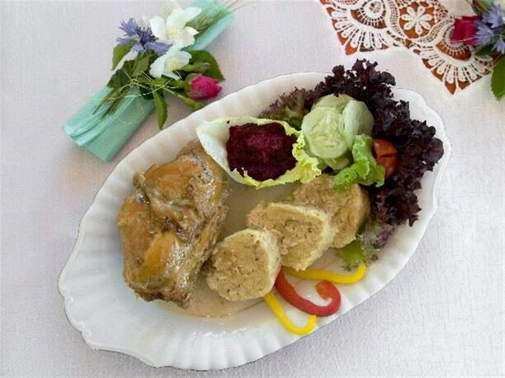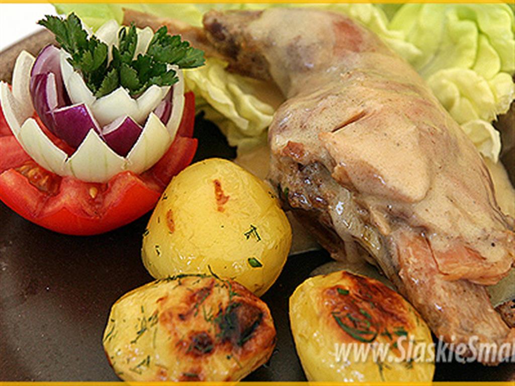 Ugotować wywar z suszonych ziół, dodać pieprz, sól, ocet. Po czym podzielić królika na kawałki i zapeklować w zaprawie. Po 24 godzinach wyciągnąć królika, odsączyć, natrzeć czosnkiem, dusić na maśle podlewając wodą około 1,5 godziny do miękkości. Na koniec wywar zabielić słodką, swojską śmietaną. Podawać z pieczonymi ziemniakami.
