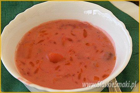 Ugotować wywar z kości schabowych i z włoszczyzny, dodać pokrojoną botwinkę. Zupę zagęścić śmietaną z dodatkiem mąki pszennej. Gotową zupę podawać z ugotowanym na twardo jajkiem i szczyptą posiekanego lubczyku.