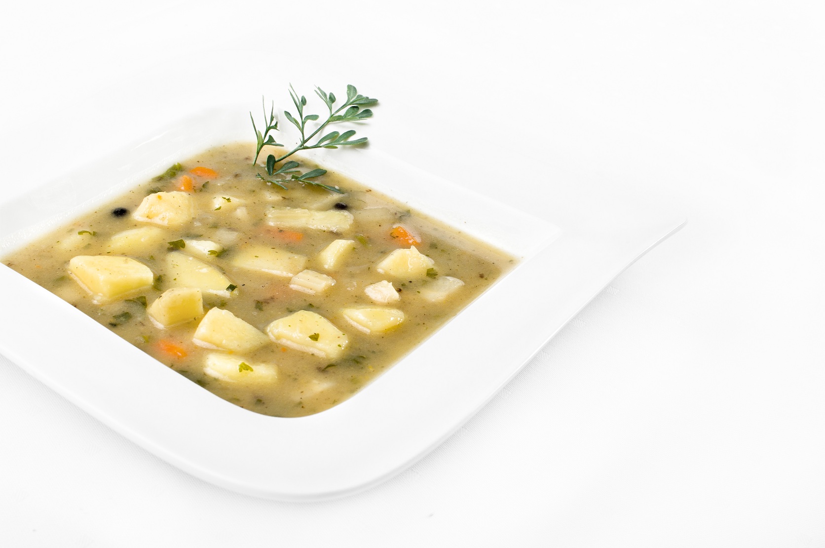 Do wody włożyć ziemniaki, włoszczyznę pokrojoną w kostkę oraz przyprawy. Cebulę opiec na blasze i wrzucić do zupy. Gotować do miękkości warzyw i przyprawić do smaku. Dodać zieloną nać pietruszki.