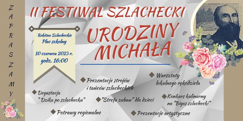 Podczas festiwalu w Rokitnie Szlacheckim zaplanowano konkurs kulinarny na najlepszy "bigos szlachecki", degustację „dzika po szlachecku” oraz potraw regionalnych, prezentację strojów i tańców szlacheckich, warsztaty lokalnego rękodzieła. Nie zabraknie również „Strefy zabaw" dla najmłodszych, do Rokitna przyjadą również motocykliści. Swoją wizytę zapowiedział również tytułowy Michał, czyli Michał Poleski – wylicza Grzegorz Piłka, sołtys Rokitna Szlacheckiego.