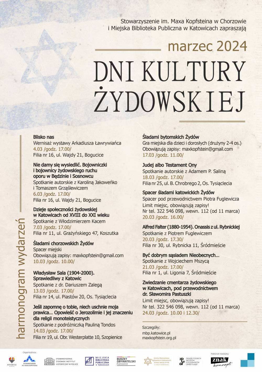 Stowarzyszenie im. Maxa Kopfsteina w Chorzowie oraz Miejska Biblioteka Publiczna w Katowicach zapraszają na Dni Kultury Żydowskiej. Niezwykły festiwal pełen spotkań, spacerów edukacyjno-historycznych oraz prelekcji będzie trwał od 4 do 24 marca br.