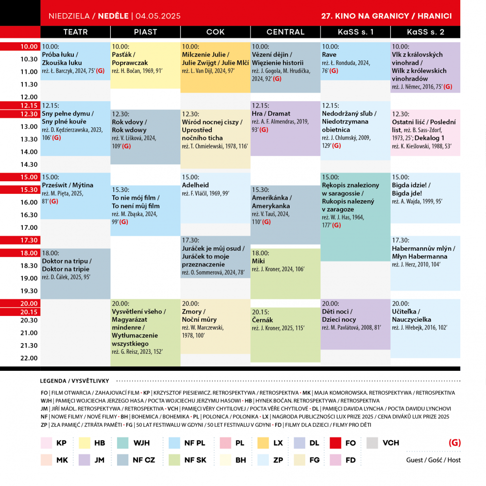 27. Przegląd Filmowy Kino na Granicy odbędzie się w dniach 30 kwietnia - 4 maja 2025 roku w Cieszynie i Czeskim Cieszynie.