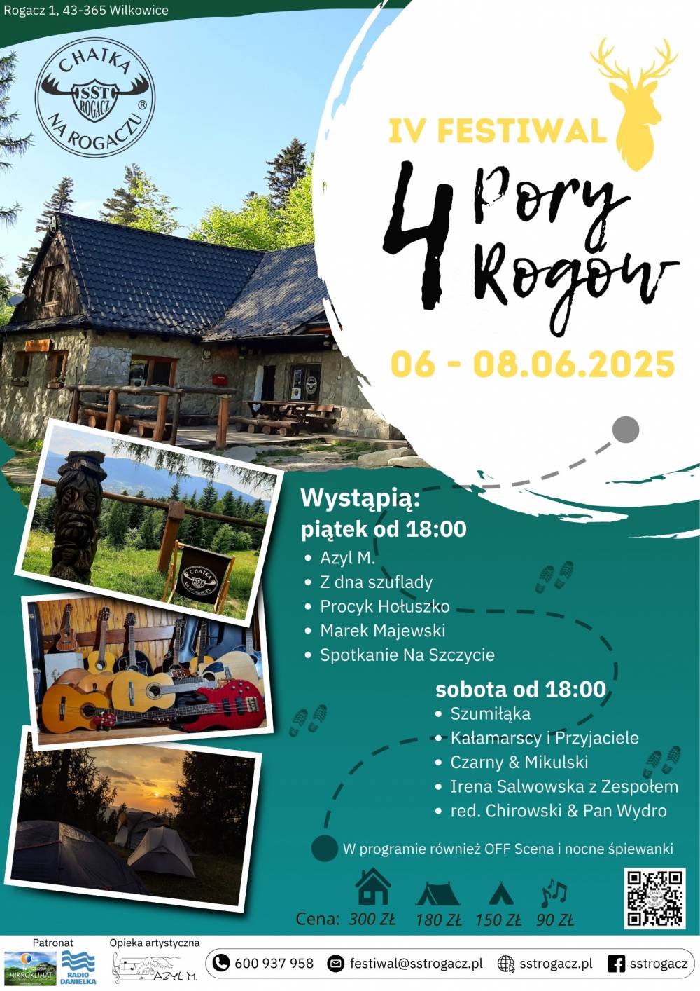 Zapraszamy na kolejną edycję Festiwalu "4 Pory Rogów" w terminie 6-8 czerwca 2025 do Chatki na Rogaczu! Spotkamy się już po raz czwarty, by wspólnie spędzić weekend przepełniony muzyką i pozytywnymi emocjami!