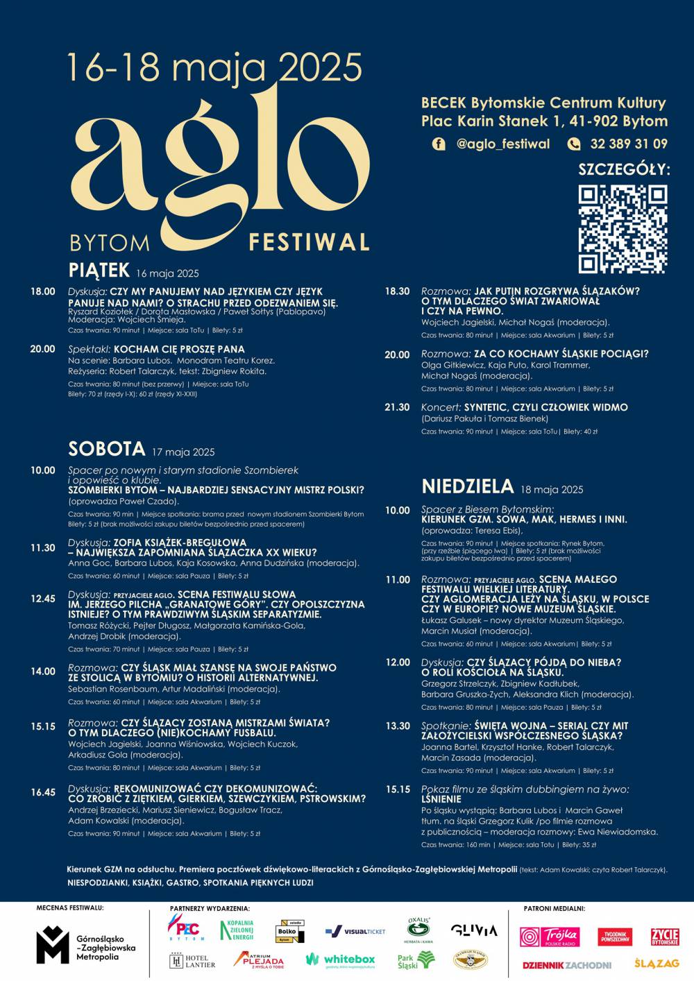 Podczas wydarzenia, Bytom stanie się stolicą regionalnej i ogólnopolskiej refleksji nad wyjątkowością i specyfiką miejsca, w którym żyjemy. Czekają nas niespodzianki, strefa gastronomiczna, spotkanie z pięknymi ludźmi a także słuchowisko: Kierunek GZM na odsłuchu, czyli premiera pocztówek dźwiękowo-literackich z Górnośląsko-Zagłębiowskiej Metropolii.