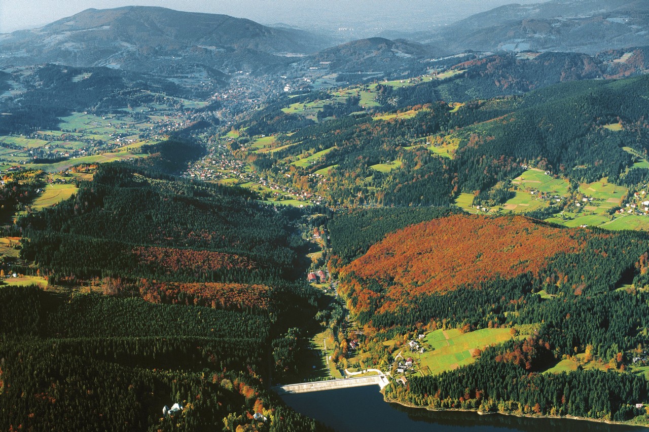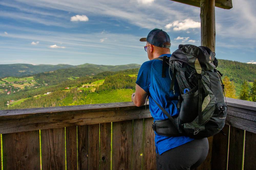 Do Istebnej schodzimy żółtym szlakiem, który wyprowadza nas naprzeciw grzbietu Złoty Groń. Na szczyt można wejść ścieżką wydeptaną pod linią kolejki bądź wjechać autem bez żadnego wysiłku. Na górze czeka piękna, dookolna panorama beskidzka, na dole zaś Park Wodny Olza.