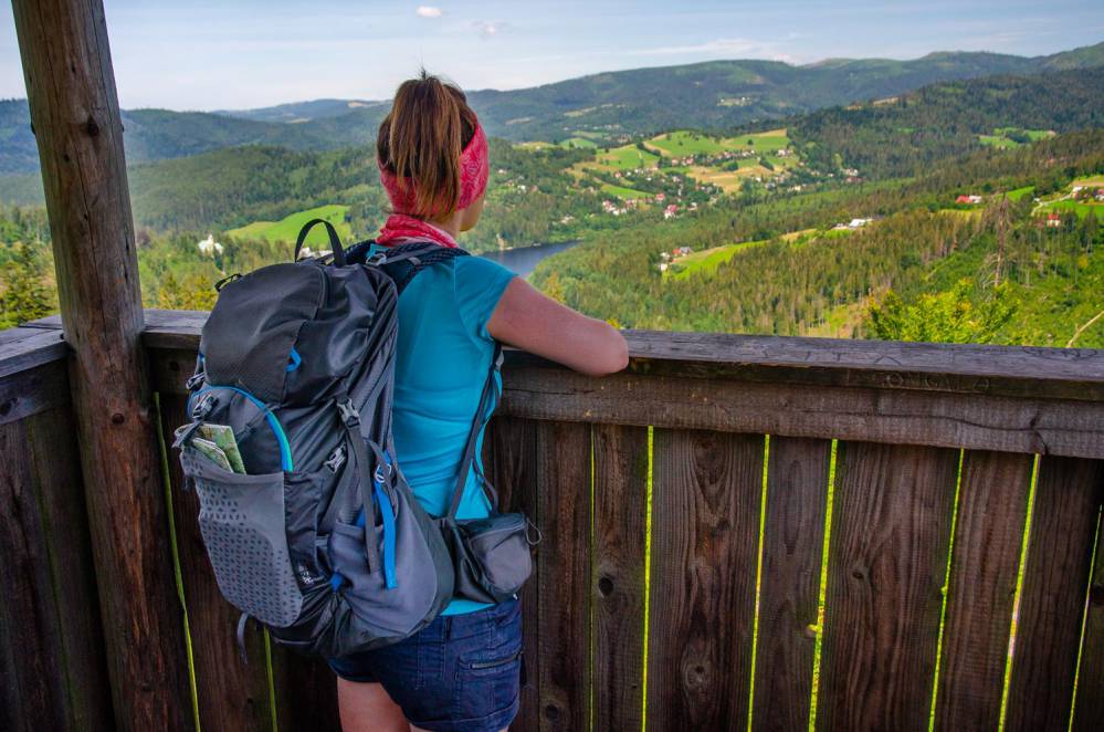 Nasza trasa kieruje się ku Przełęczy Kubalonka (761 m n.p.m.), gdzie znajduje się drewniany kościół Świętego Krzyża (nieco poniżej siodła, jakieś 300 metrów od czerwonego szlaku). Po chwili mijamy Przełęcz Szarcula, z której warto podejść na mini-wieżę pod Dorkową Skałą (5 minut asfaltową drogą) ze świetnym widokiem na Jezioro Czerniańskie.