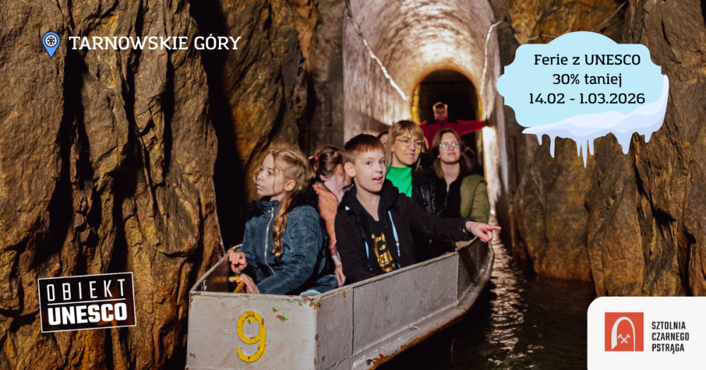 Od 14 lutego do 1 marca zapraszamy na zwiedzanie Zabytkowej Kopalni Srebra oraz Sztolni Czarnego Pstrąga w Tarnowskich Górach z przewodnikiem aż 30% taniej! Tegoroczne ferie zimowe w województwie śląskim to doskonała okazja, by odkryć jedyne w woj. śląskim obiekty, wpisane na Listę Światowego Dziedzictwa UNESCO.