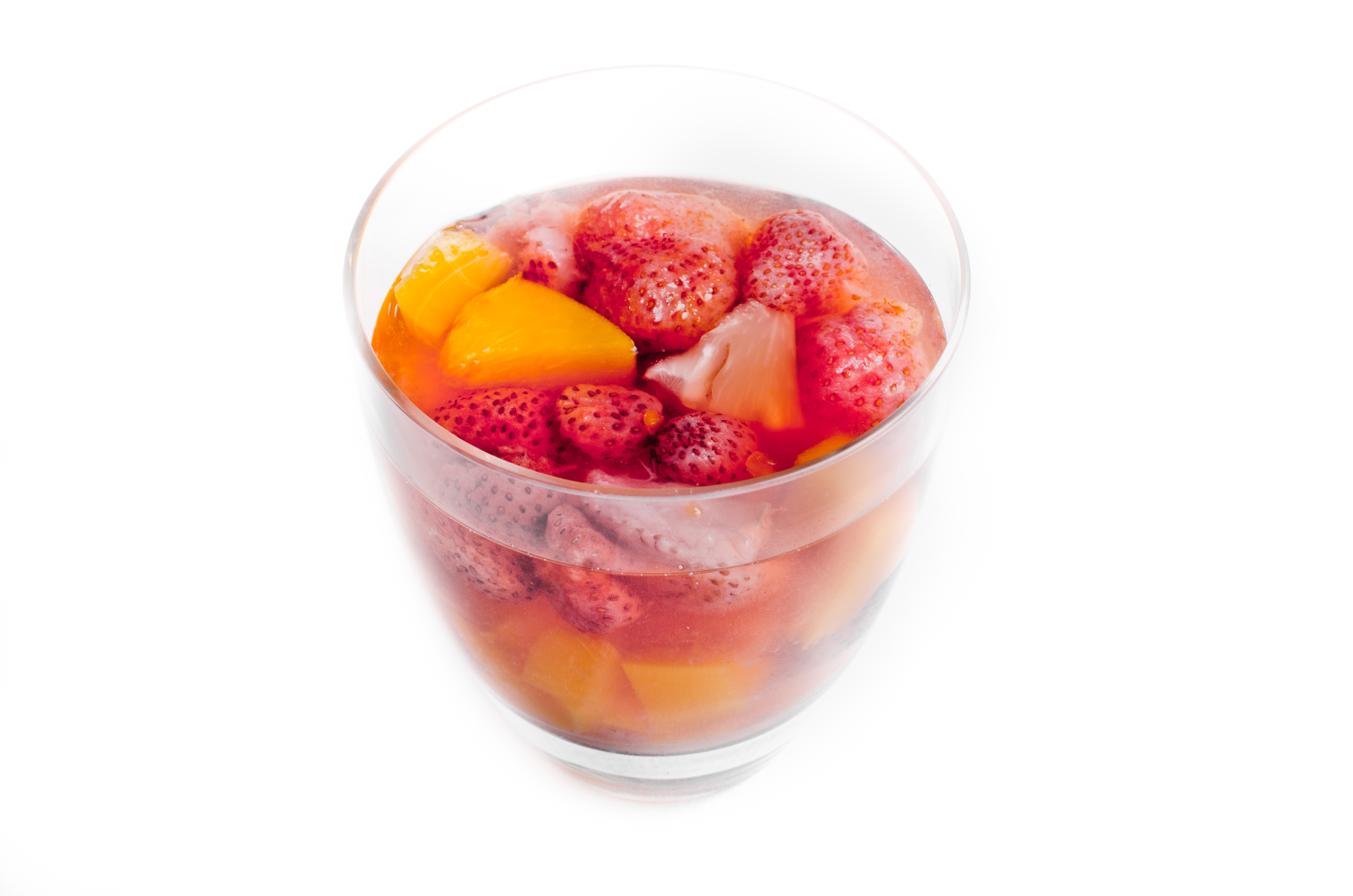 900 g różnych owoców z syropu (morele, mandarynki, ananas w kostkach, pomarańcze, truskawki, maliny lub brzoskwinie)
