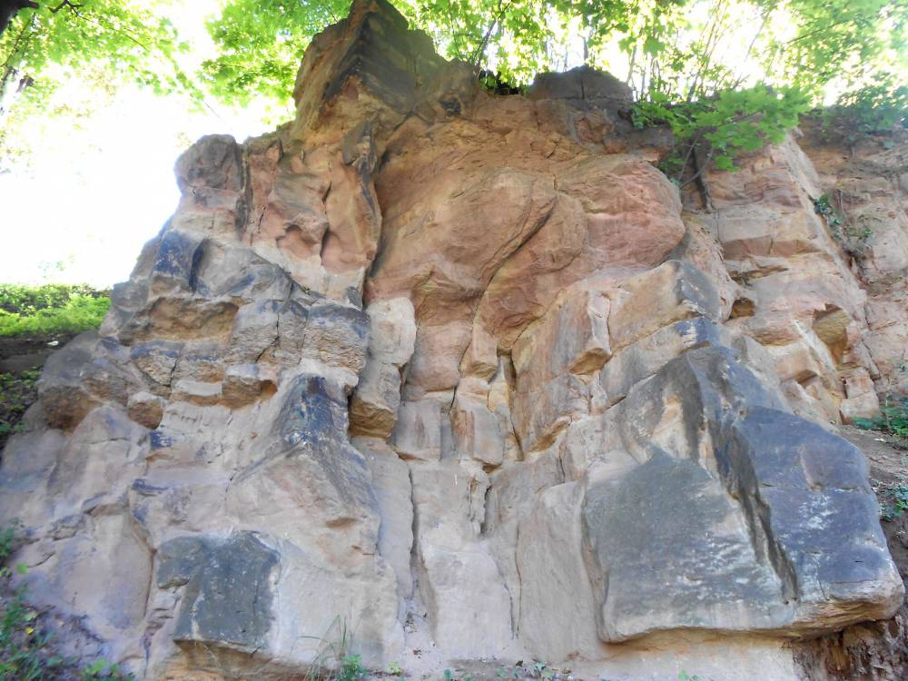 Skały widoczne w odsłonięciu ujawniły się na powierzchni terenu na skutek wydobywania piaskowców przez człowieka. W latach 60. i 70. zdecydowano się w najbliższym sąsiedztwie wybudować osiedle mieszkaniowe, dlatego dziś w postaci nienaruszonej możemy oglądać tylko niewielki fragment wychodni piaskowców. Obecnie wychodnia to fragment skarpy w stromym zboczu wzgórza, wysoki na około 8 metrów i długi na około 50 metrów. Dominują tu piaskowce średnio- i drobnoziarniste z domieszką ziaren frakcji grubej. Mają one barwę jasnożółtą, w stropie są bardziej pstre, żółto-czerwone i brunatno-wiśniowe. W części stropowej występują dwie cienkie warstwy mułowca. W odsłonięciu wyraźnie zaznaczają się różnice w odporności na wietrzenie, wynikające ze zróżnicowania składu mineralnego spoiwa. W leżących przy skarpie blokach piaskowca napotkać można piaskowce gruboziarniste, zlepieńcowe, z odciskami pni, głównie lepidodendronów i kalamitów.