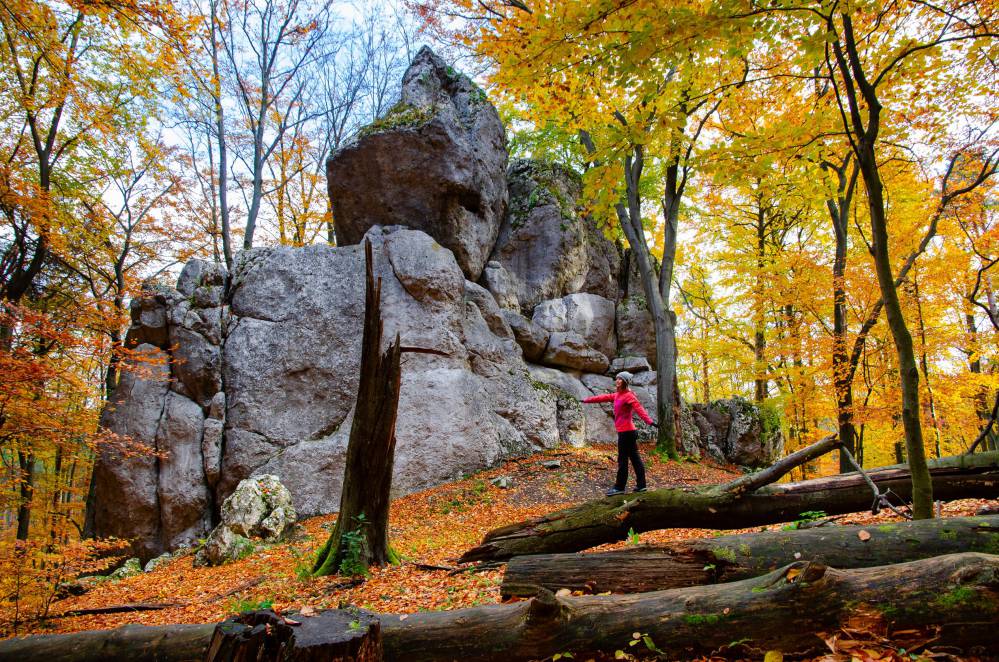 Mimo niezbyt długiego dystansu, trasa tej wycieczki jest niezwykle urozmaicona. Łączy zwiedzanie popularnego zamku z mniej uczęszczanymi, ale równie atrakcyjnymi zakątkami. Podczas jednej wędrówki przemierzymy cenne przyrodniczo obszary i poznamy typowy dla Jury krajobraz, naszpikowany fantazyjnymi wapiennymi skałami oraz malowniczymi punktami widokowymi. Ze względu na brak trudności oraz niewielkie przewyższenia trasę tę mogą wybrać turyści początkujący oraz rodziny z dziećmi.