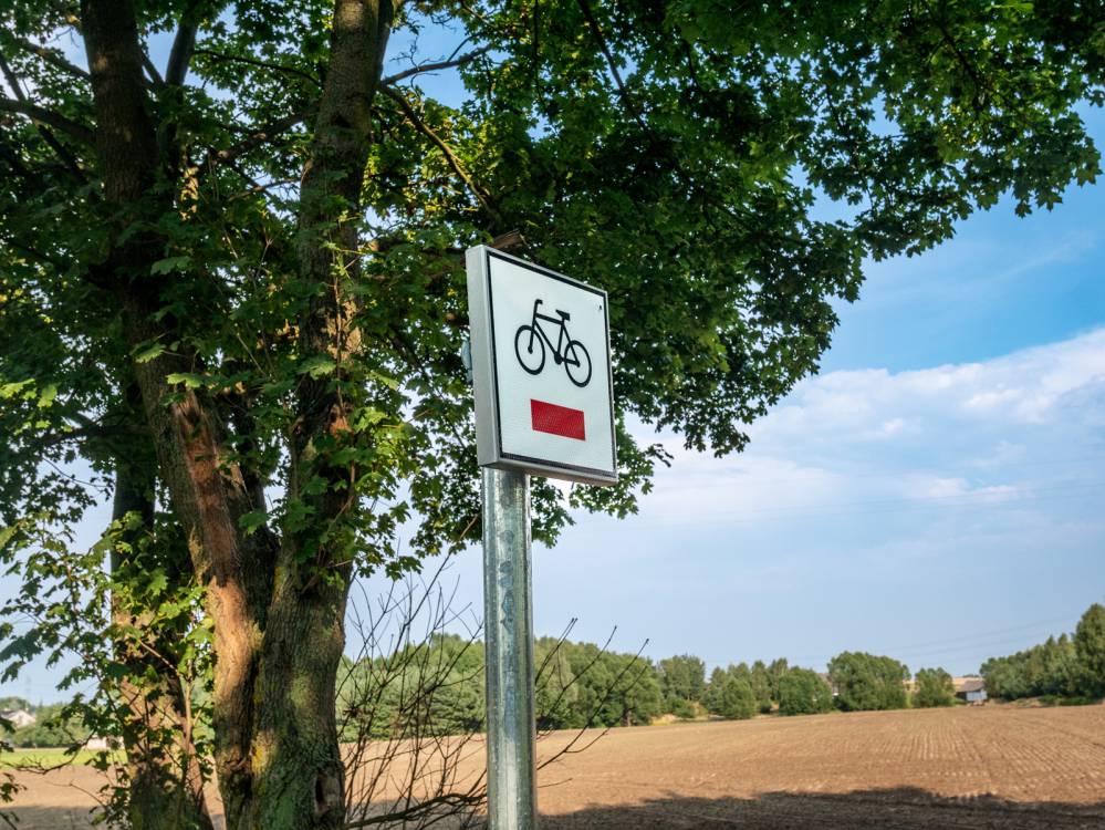 Folga na zakolu - szlak czerwony, oznakowanie, Damian Berłowski - roweremposlasku.pl