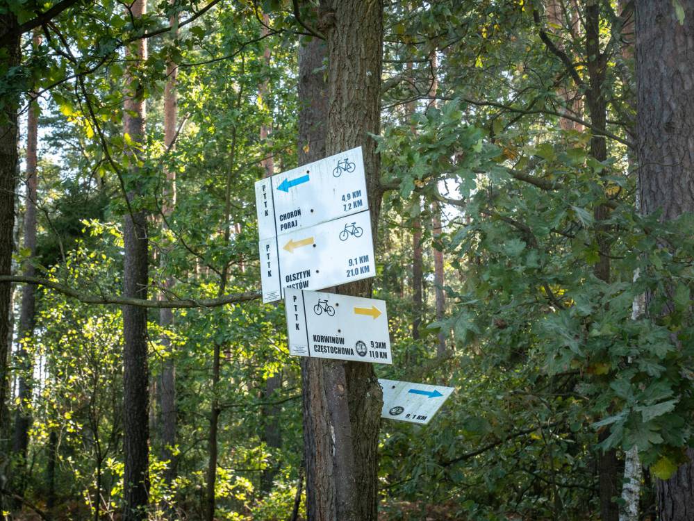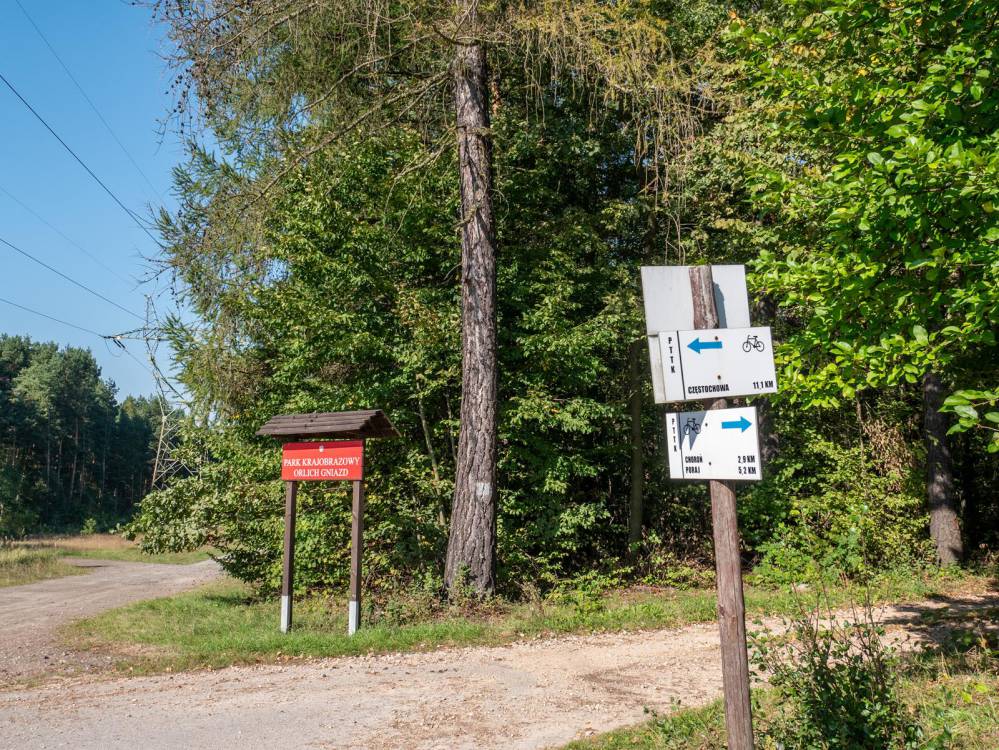 Szlak kończy się 250 metrów od dworca PKP w Poraju. Jest tam również parking. Na drugim końcu szlaku samochód można zostawić na parkingu przy drodze rowerowej wzdłuż DK46 w kierunku Olsztyna.