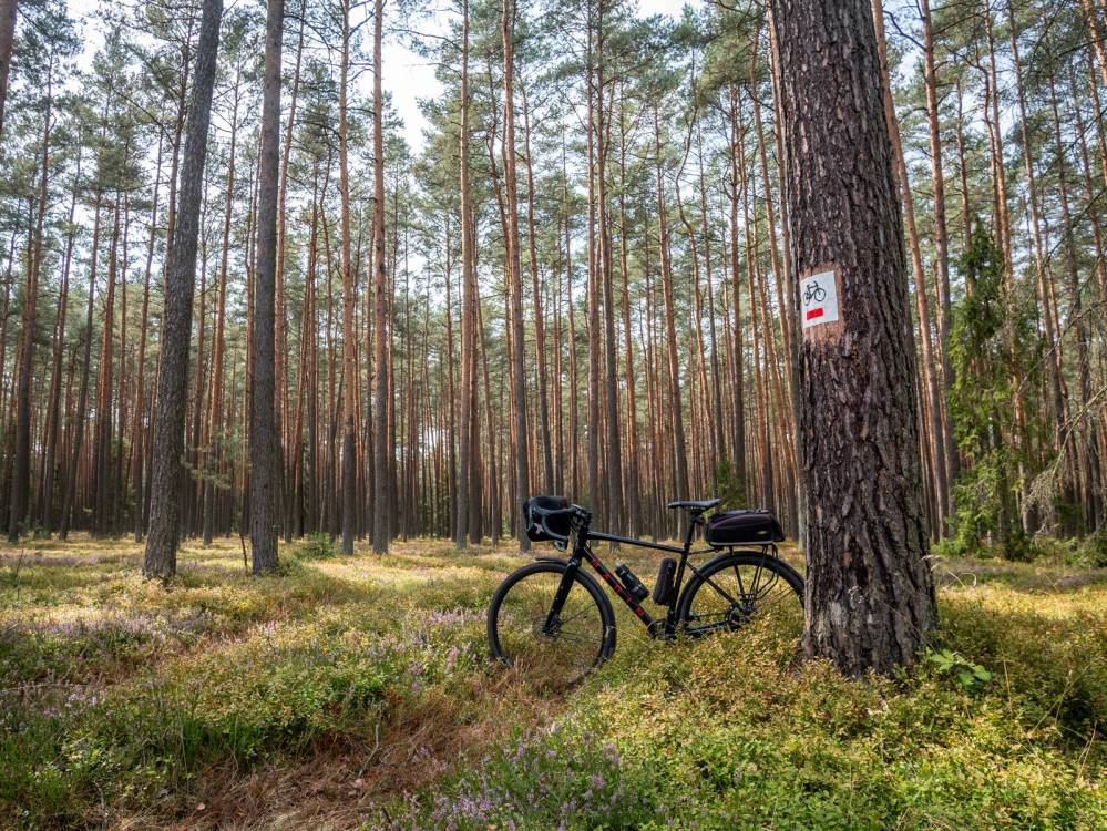 Szlak prowadzi głównie przez tereny leśne, dlatego najlepiej sprawdzi się rower wyposażony w szersze opony – typu gravel, cross lub MTB. Około 32% trasy stanowią drogi szutrowe, natomiast 23% to drogi gruntowe. Większość z nich to dobrej jakości leśne dukty, choć przed miejscowością Potępa należy przygotować się na bardziej piaszczysty i wymagający odcinek. Pozostała część trasy to asfaltowe drogi publiczne o niewielkim natężeniu ruchu samochodowego (41%) oraz krótkie odcinki dedykowanych dróg rowerowych (4%).