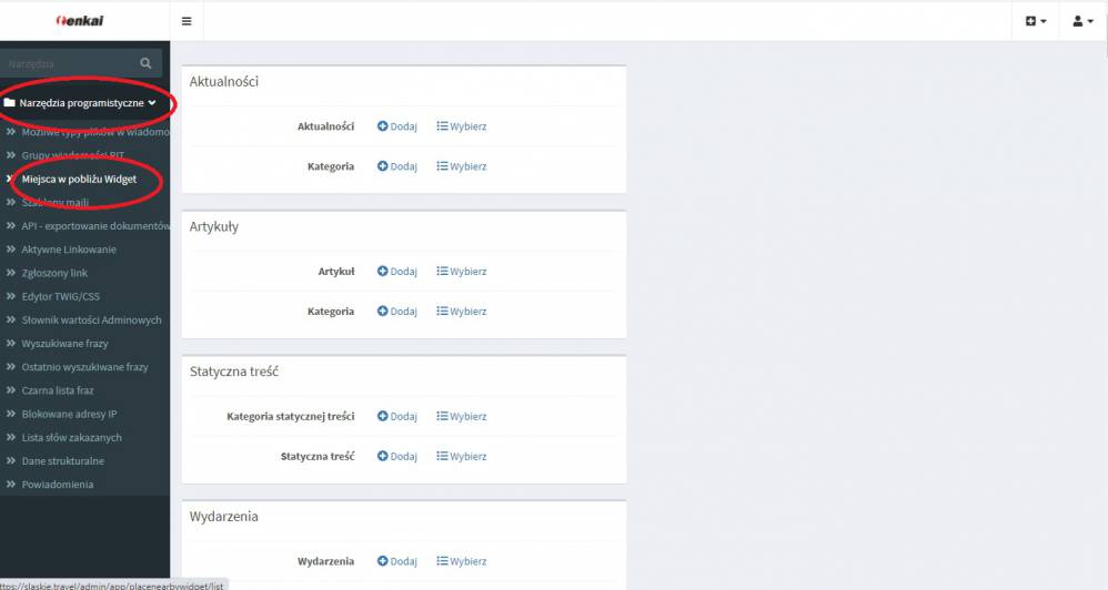 2. W opcji „Narzędzia programistyczne” wybierz „Miejsca w pobliżu Widget”.