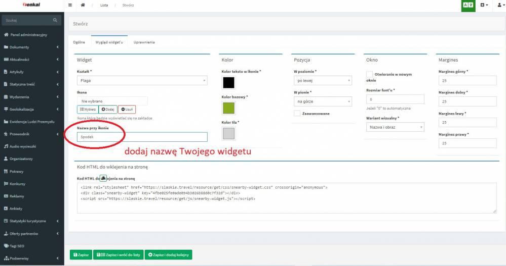 14. Dodaj nazwę, która będzie widoczna przy ikonie Twojego widgetu np. Spodek