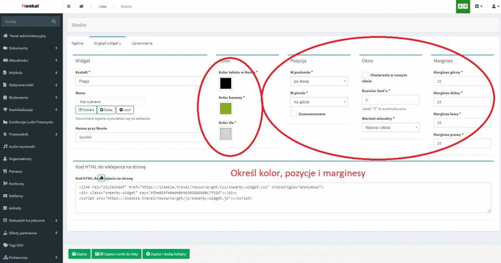 15. Określ kolor, pozycję, elementy okna i marginesy. Zapisz zmiany opcją „Zapisz”.