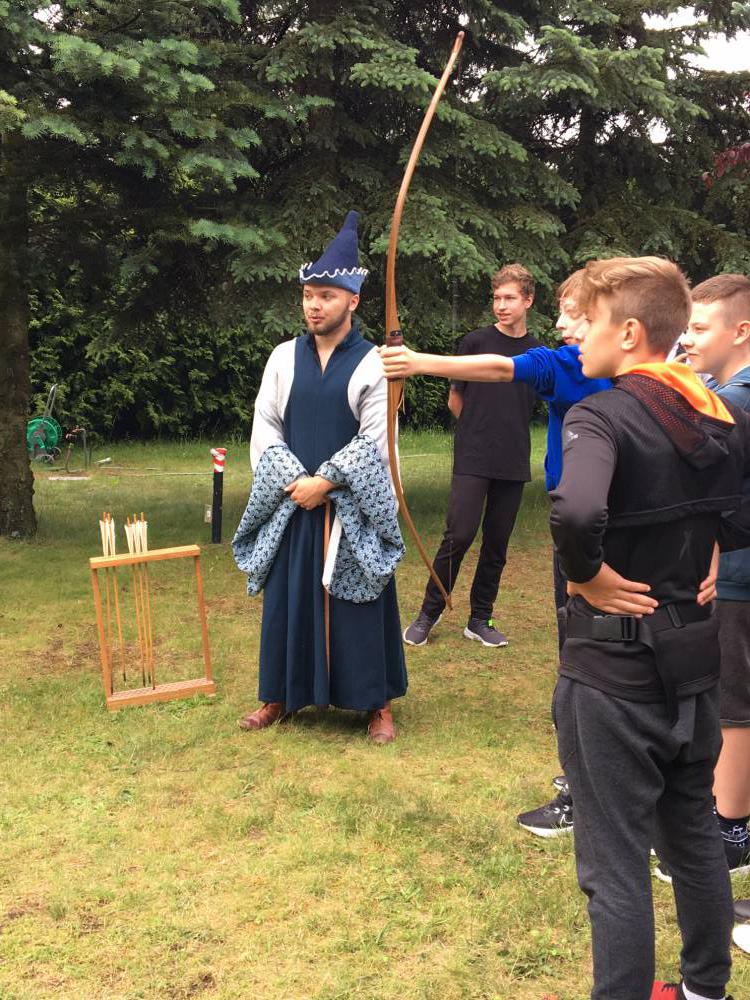 ,,Zapraszamy do zwiedzenia w naszym Wehikule Czasu ekspozycji dotyczącej średniowiecza. To magiczna podróż do świata historii. Uczestnicy odwiedzą średniowieczny dom i obóz rycerski. Odkryją co jadano w średniowieczu, odwiedzą kata i medyka, spróbują pisać gęsim piórem jak średniowieczny skryba, sprawdzą czy rycerstwo to lekki fach. Odwiedzający będą uczestnikami a nie tylko obserwatorami tej średniowiecznej przygody.
